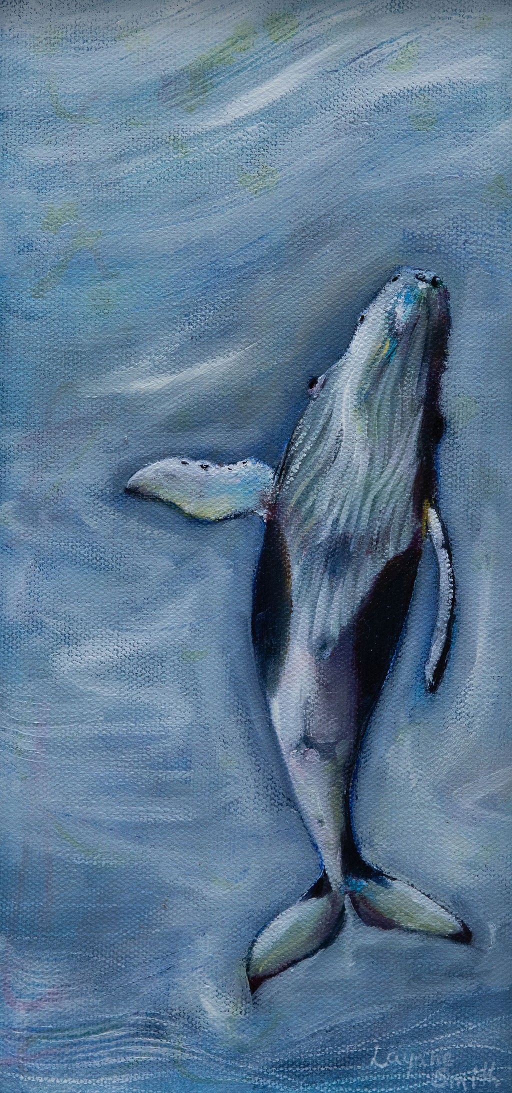 The humpback whale is a symbol of resilience and growth. As you see it rising towards the surface, I hope you feel the call to elevate your own spirit, overcoming challenges and embracing the journey of personal and spiritual development with renewed courage and hope.This painting symbolizes the process of rising from within, transforming through life’s challenges, and embracing a renewed sense of self and purpose.