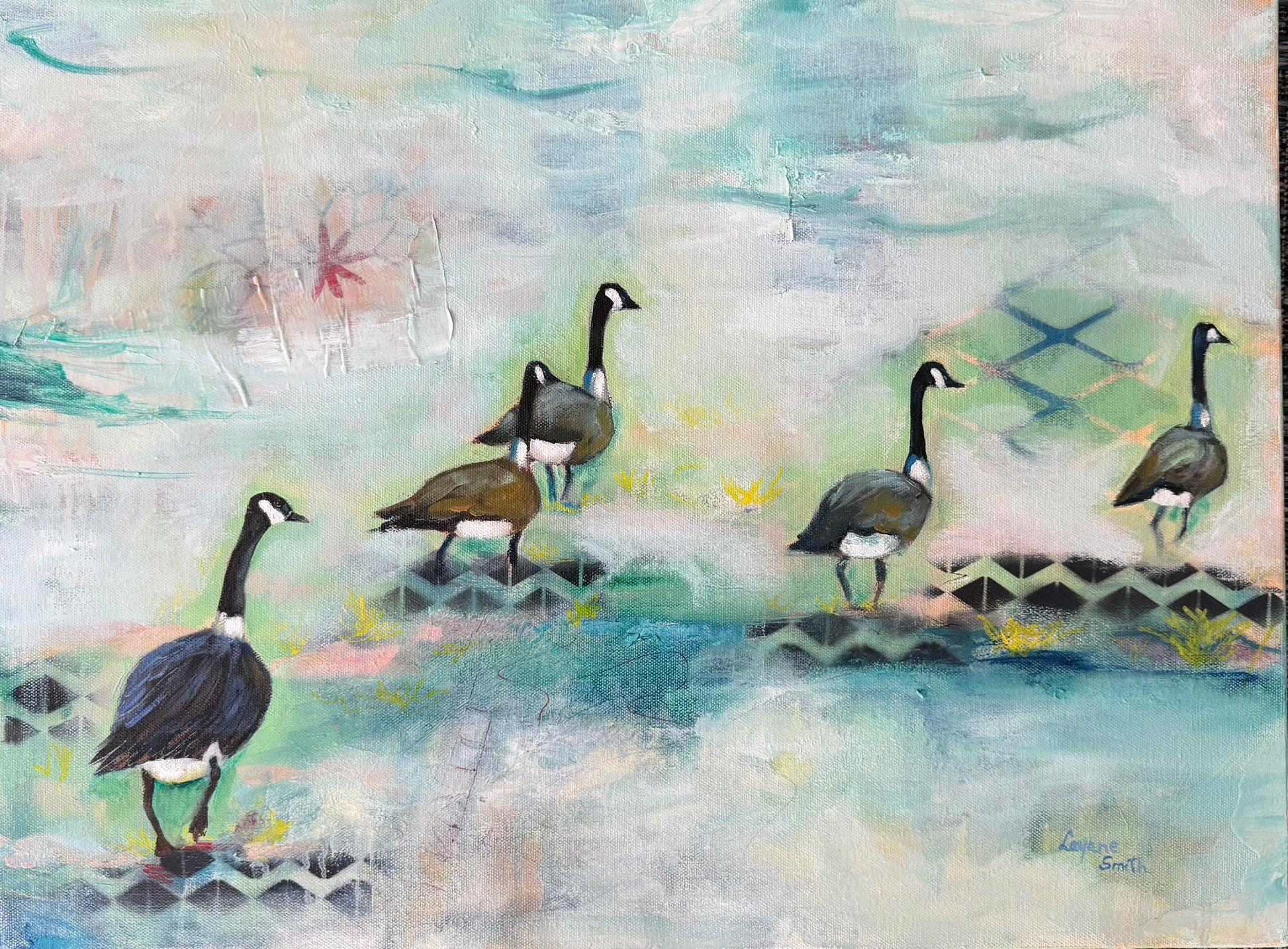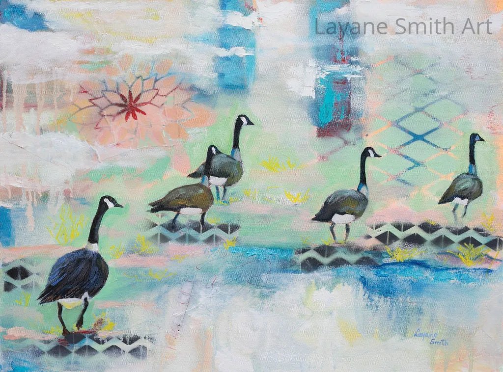 Geese represent determination, purposeful movement, and being an able pilot of your own life's journey . Geese know exactly where they are going and how to get there . Those geese are purposely fun and happy . It takes determination to live a happy and fun life . This painting was created to remind you to know where you are going but also purposely have fun on your way there.