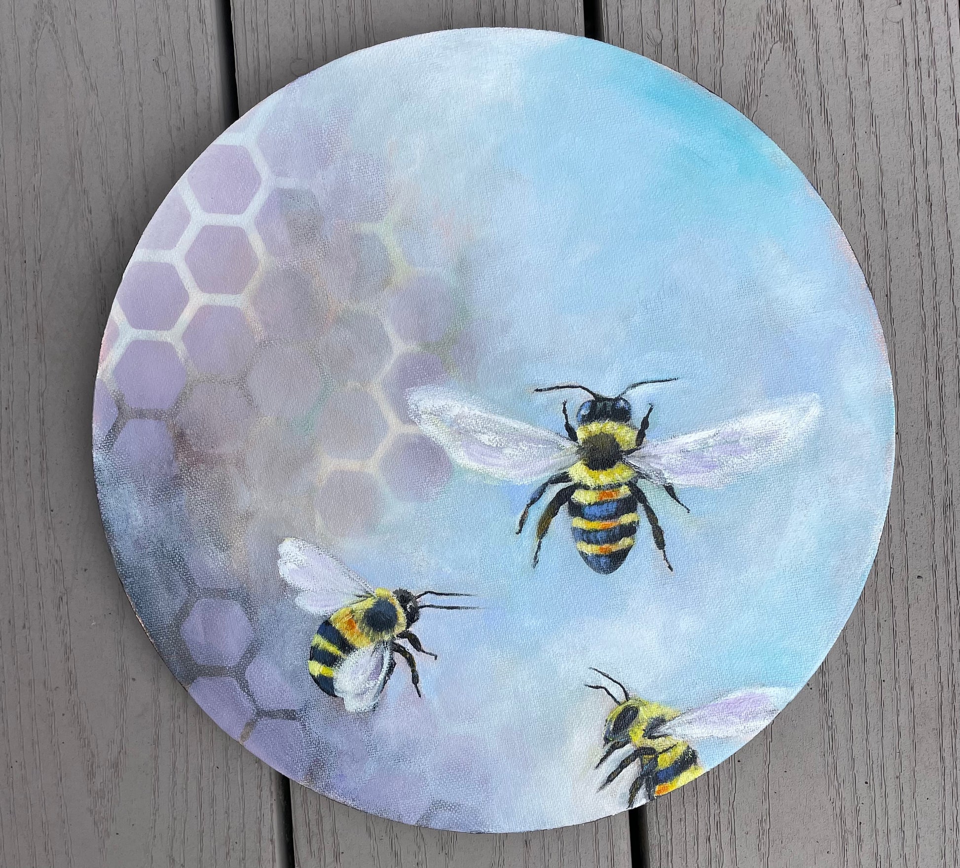 There’s a quiet magic in the way bees move through the world—delicate yet purposeful, always drawn toward the light. This piece speaks of gentleness, warmth, and the feeling of belonging, like sunlight filtering through a soft spring morning. A reminder that home isn’t just a place—it’s the moments of peace and connection we carry within us.