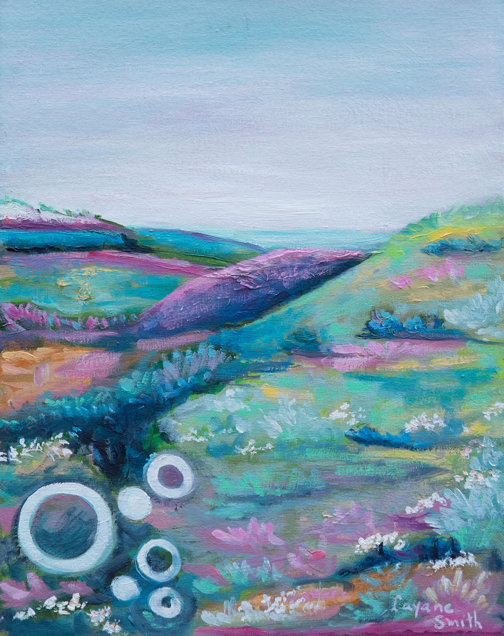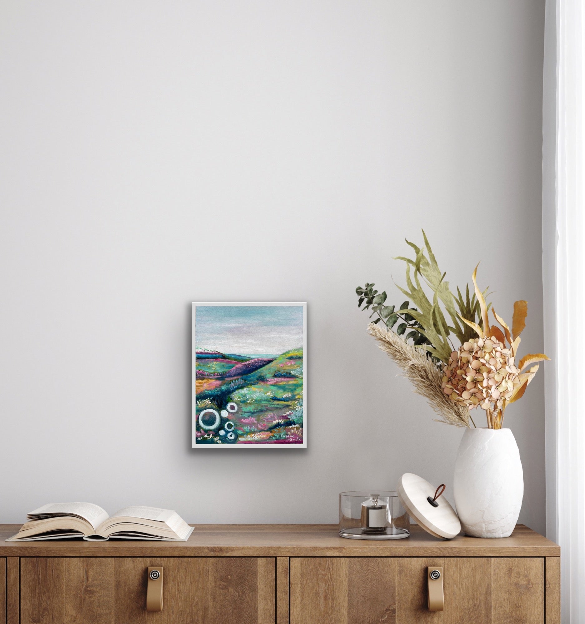 This landscape bursts with the joy of creation, where mountains are filled with wildflowers. The abstract circles symbolize the infinite grace and cycles of renewal. The soft, radiant colors speak of the quiet yet profound beauty found in the natural world. May this piece remind you of the boundless grace that surrounds us, even in the most unexpected places, and fill your heart with a sense of peace and wonder.