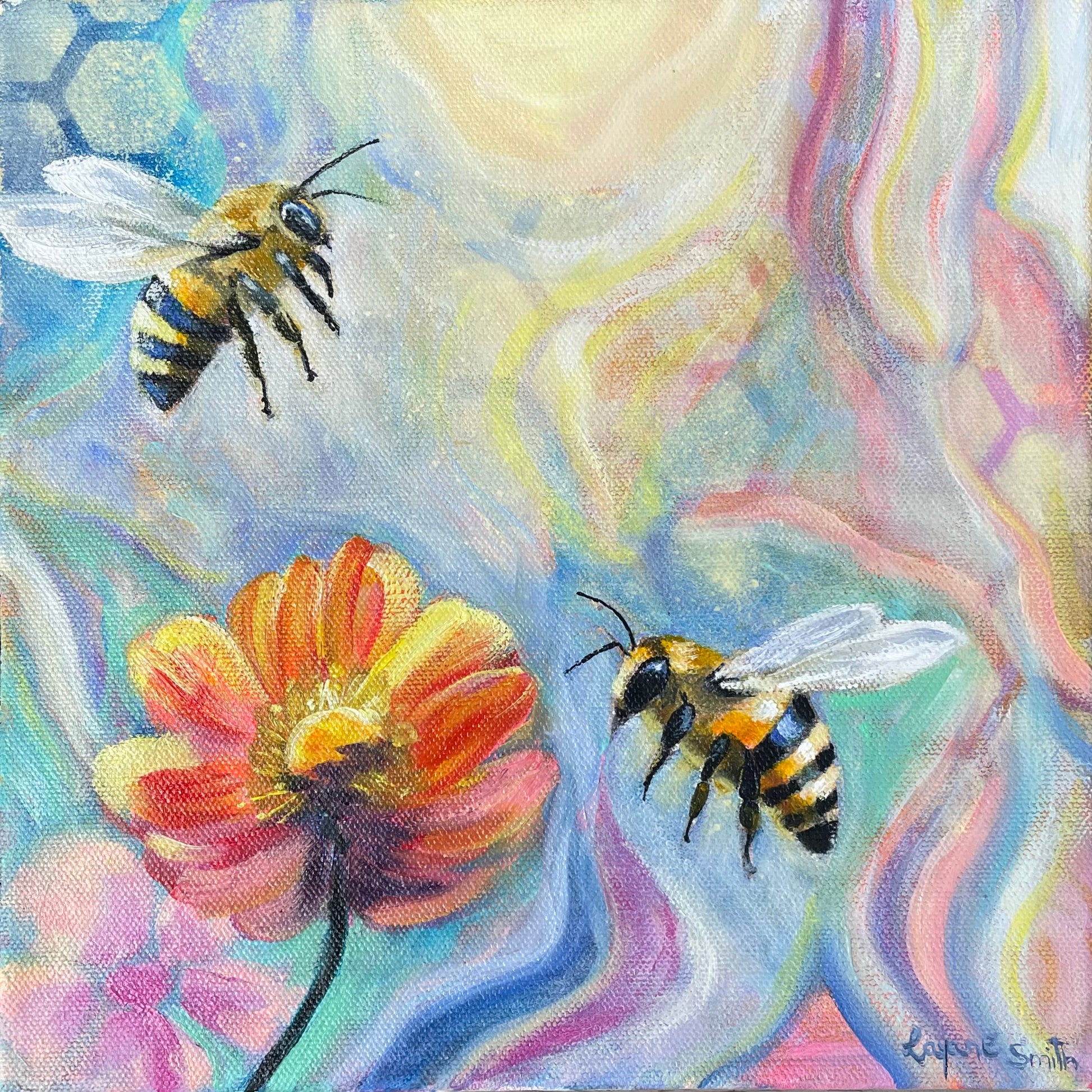 Mixed Media and Oil on gallery wrapped canvas 10”x10”